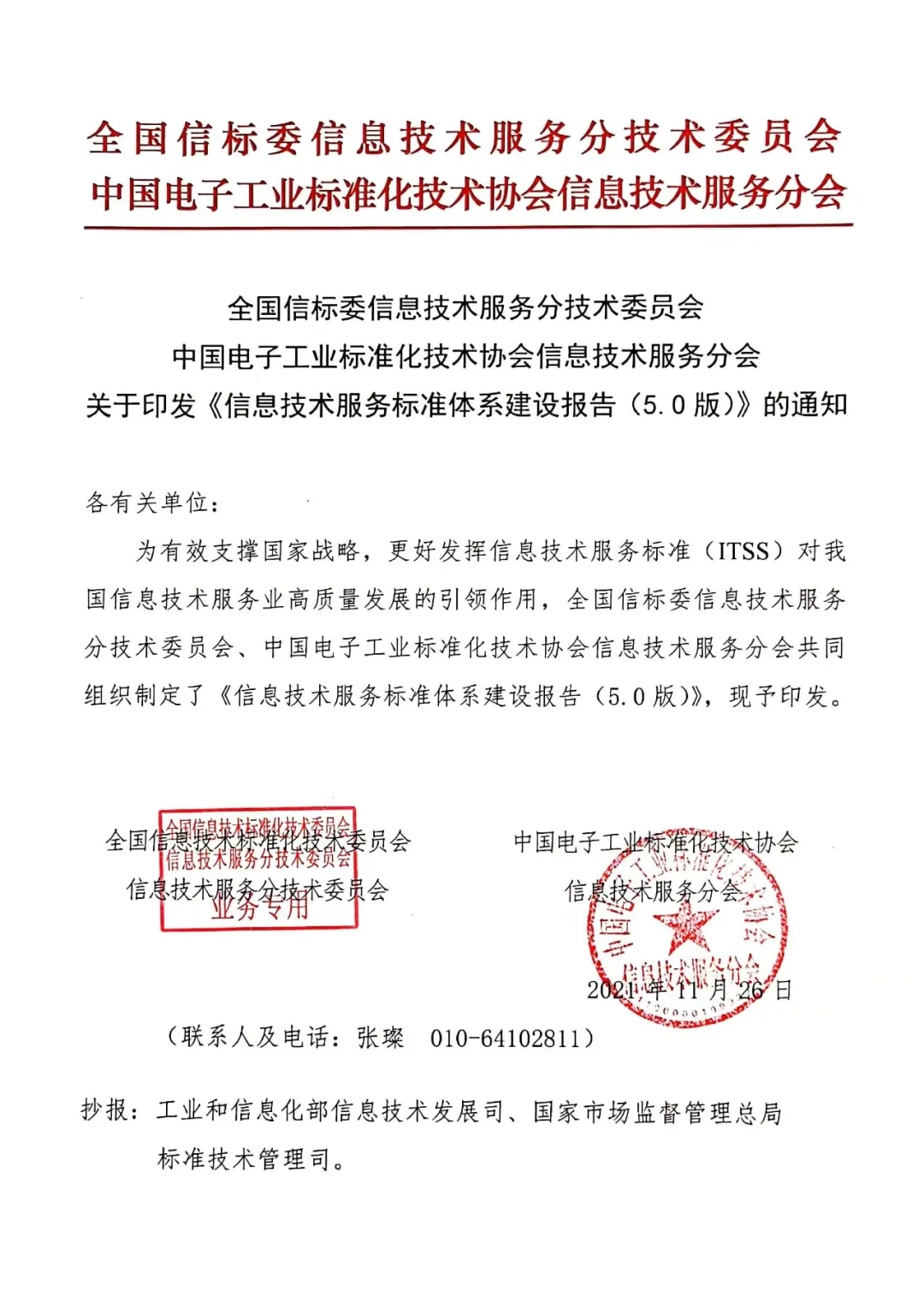 关于印发《信息技术服务标准体系建设报告(5.0版)》的通知