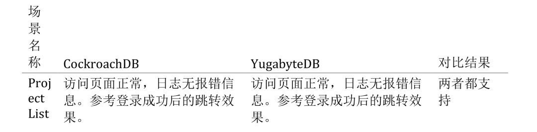 对比结果:CockroachDB:进入到创建项目页面返回500异常,日志报错信息。“ActionView::Template::Error (PG::UndefinedColumn: ERROR: column “namespaces.rowid” does not exist”。YugabyteDB:提交导入请求后持续加载中,观察日志无报错,一段时间后跳转到创建好的项目页面。